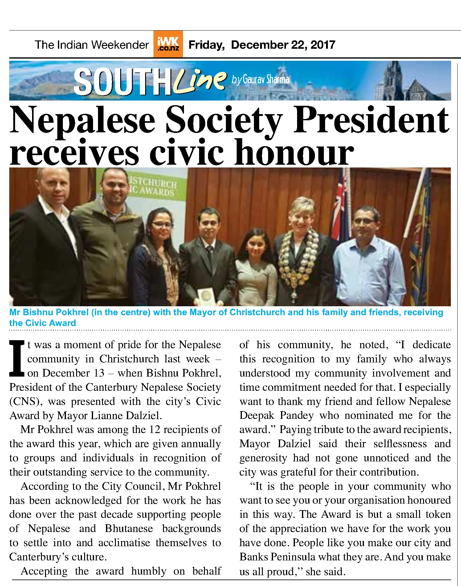 Nepalese Society President receives civic honour